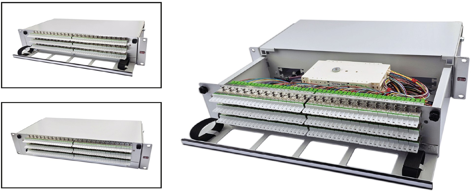 Die 19”/ 2HE Lightbox ist eine 2-teilige Spleiß- und Patchbox zur Aufnahme von bis zu 144 Fasern auf 2HE, welche auch für