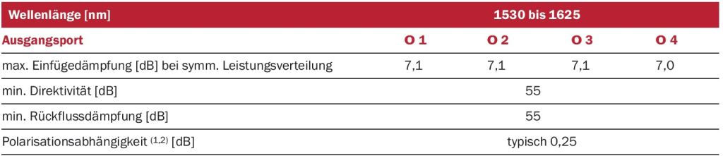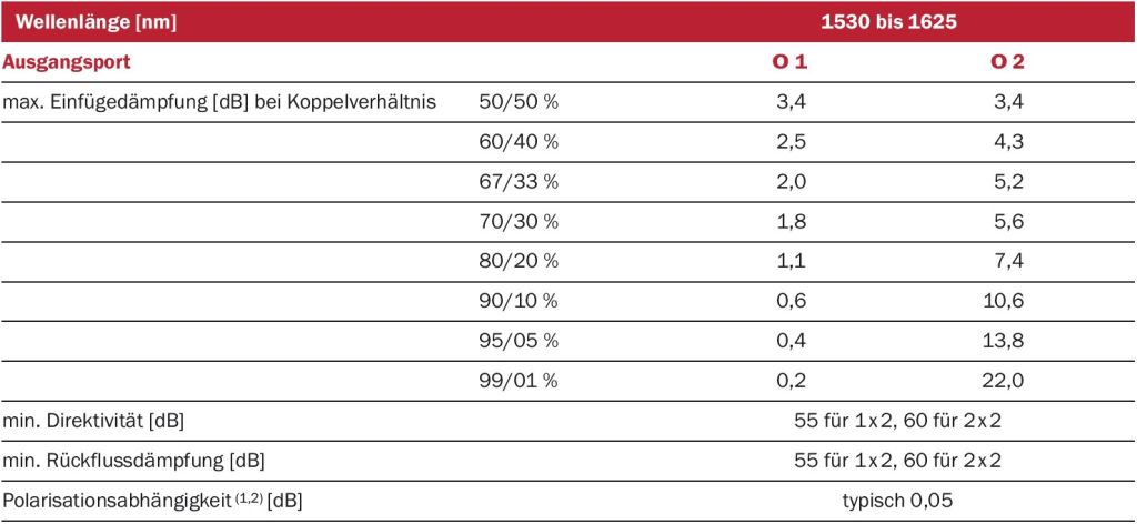 (1) maximal 0,1dB für Port O 1, maximal 0,2 dB für Port O 2 und für Port O 3, für symm. Koppler